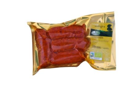 Chorizo elaborado con carne de cerdo ecológica, aderezado con hierbas y especias de producción ecológica. Libre de transgénicos.