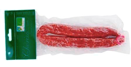 Chorizo elaborado con carne de cerdo ecológica, aderezado con hierbas y especias de producción ecológica. Libre de transgénicos.