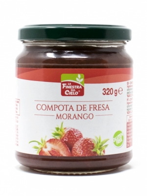 Compota de fresa procedente de agricultura ecológica certificada. Obtenida de la cocción de la fruta y su mezcla con concentrado de manzana. Con un mínimo de un 60-70% de la mejor fruta.